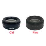 - 0.5X auxiliary objective: magnification is reduced by 0.5X, working distance is increased and the field of view of the lens is enlarged.