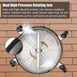 - Efficient Cleaning: With dual high-pressure rotating jets and high-density bristles, can effectively and quickly remove stubborn stains, residual road dirt, sand, light mud, oil and fuel stains, grime and leaves from the floor.