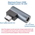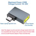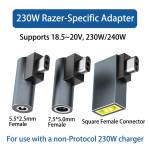 - Supports 18–20V input. Simply connect a 230W power adapter to your Razer laptop using this adapter (Note: This adapter is a standard converter and does not support any specific charging protocols. It must be used with a power adapter rated between 18V and 20V with a power output of at least 230W. Do not use with PD power adapters!)