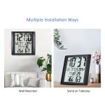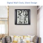 Digital Wall Clock with Temperature and Humidity 8.6-inch Large Display Time / Date / Day Alarm and Snooze Function Optional Indoor Thermo-Hygrometer Accurate Weather Monitor for Home Office (Black)