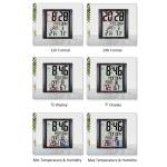 - Multiple data display: Shows Time, Date, Week, current temperature, and relative humidity. Large fonts for easy reading.
