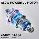 - Powerful Suction: 14Kpa strong suction, 650W high-efficiency motor, easily clean up various messes.