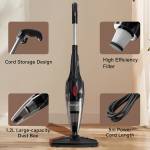 This 2-in-1 powerful handheld vacuum cleaner features a strong 14Kpa suction, 650W high-efficiency motor, 1.2L large-capacity dust box, 5m power cord, high-efficiency HEPA filter, self-standing design, and is suitable for vacuuming small messes and floors.