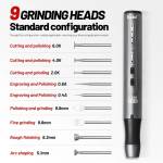 - Standard equipped with 9 grinding heads, covering cutting (6.0K/4.0K/2.0K), engraving (0.6A/0.4A), polishing/finishing (9.8mm), rough shaping (6.3mm). Suitable for various materials, ready to use out of the box