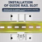 - DIN rail slot mounting utilizes standard DIN rail installation, screw-free, snap-fit locking, and quick and easy installation