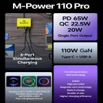 - 110W High-Power Output: Up to 65W per port via PD and up to 22.5W per port via QC. Automatically adapts to various charging power levels, supporting smartphones, laptops, wearables, and the Nintendo Switch.