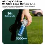 - All-Day Cooling 9h Ultra Long Battery Life: 3000mAh true capacity,the same battery used in new energy vehicles for added peace of mind