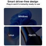 - Smart driver-free design with plug-and-play functionality; compatible with Windows, Mac, Linux, and other multi-platform operating systems
