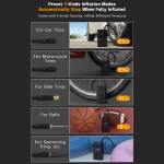 - Preset Mode: Automobile 2.5bar/motorcycle 2.4bar/bicycle 45psi/basketball 8psi
