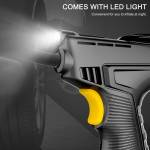 Summary: Portable air compressor with preset tire pressure, LED light, high capacity battery, and compact design for convenient use.