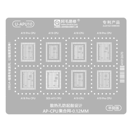 Amaoe U-APU10 0.12mm Apple CPU Collection BGA Reballing Stencil for Apple A15 / A18 / A18Pro / A19 / A19Pro