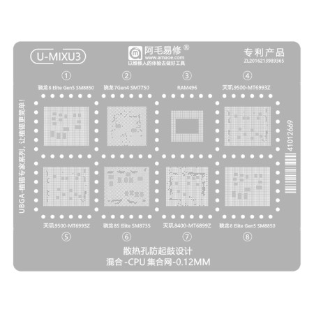 Amaoe U-MIXU3 0.12mm Qualcomm Snapdragon & MediaTek CPU Mixed BGA Reballing Stencil