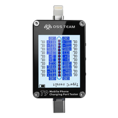OSS T9 Smart HD Display Lightning & Type-C Tail Plug Tester for Apple & Android Phones
