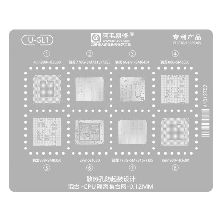 Amaoe U-GL1 0.12mm CPU-isolated Mixed BGA Reballing Stencil for Snapdragon / Kirin / Exynos