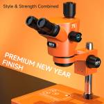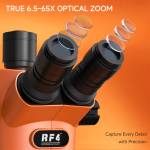 RF4 71i Orange Edition 30° Inclination Design 6.5-65X Zoom Trinocular Stereo Microscope with Big Base