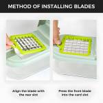 - This vegetable cutter is designed with user-friendliness in mind. Simply place the vegetables in the designated area, press down firmly, and let the sharp blades do their magic. The non-slip base provides stability during use, making the chopping process safe and efficient. Cleaning is also a breeze, as all parts can be easily dismantled and cleaned under running water.