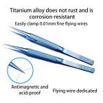 - Titanium alloy does not rust and is corrosion-resistant, easily clamps 0.01mm fine flying wires, anti-magnetic, and acid-proof, dedicated to flying wires.