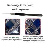 - Does not damage the motherboard or cause solder splatter; chips can be lifted directly without removing the adhesive border; each solder joint remains flat and intact
